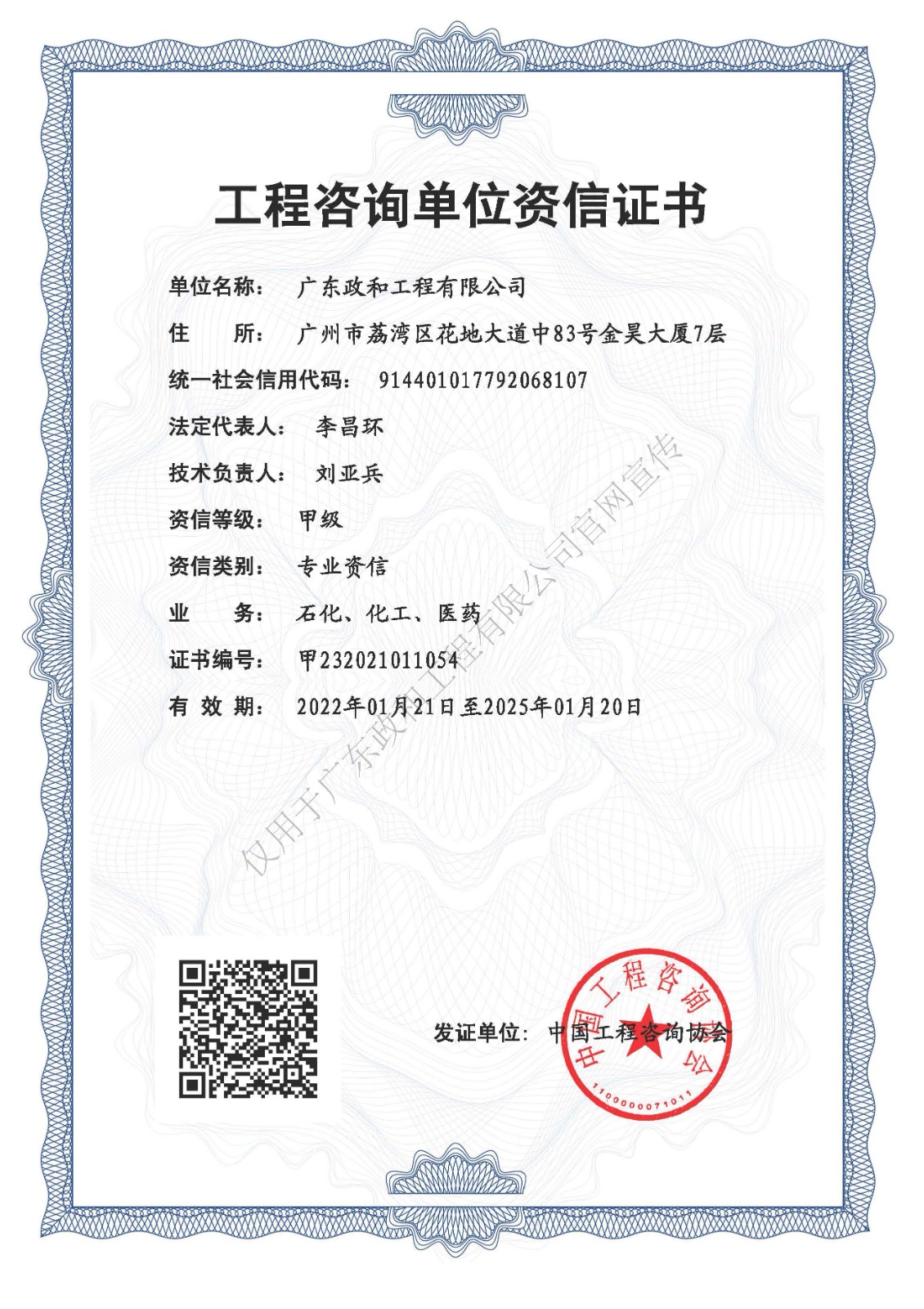 工程谘詢單位甲級資信證書