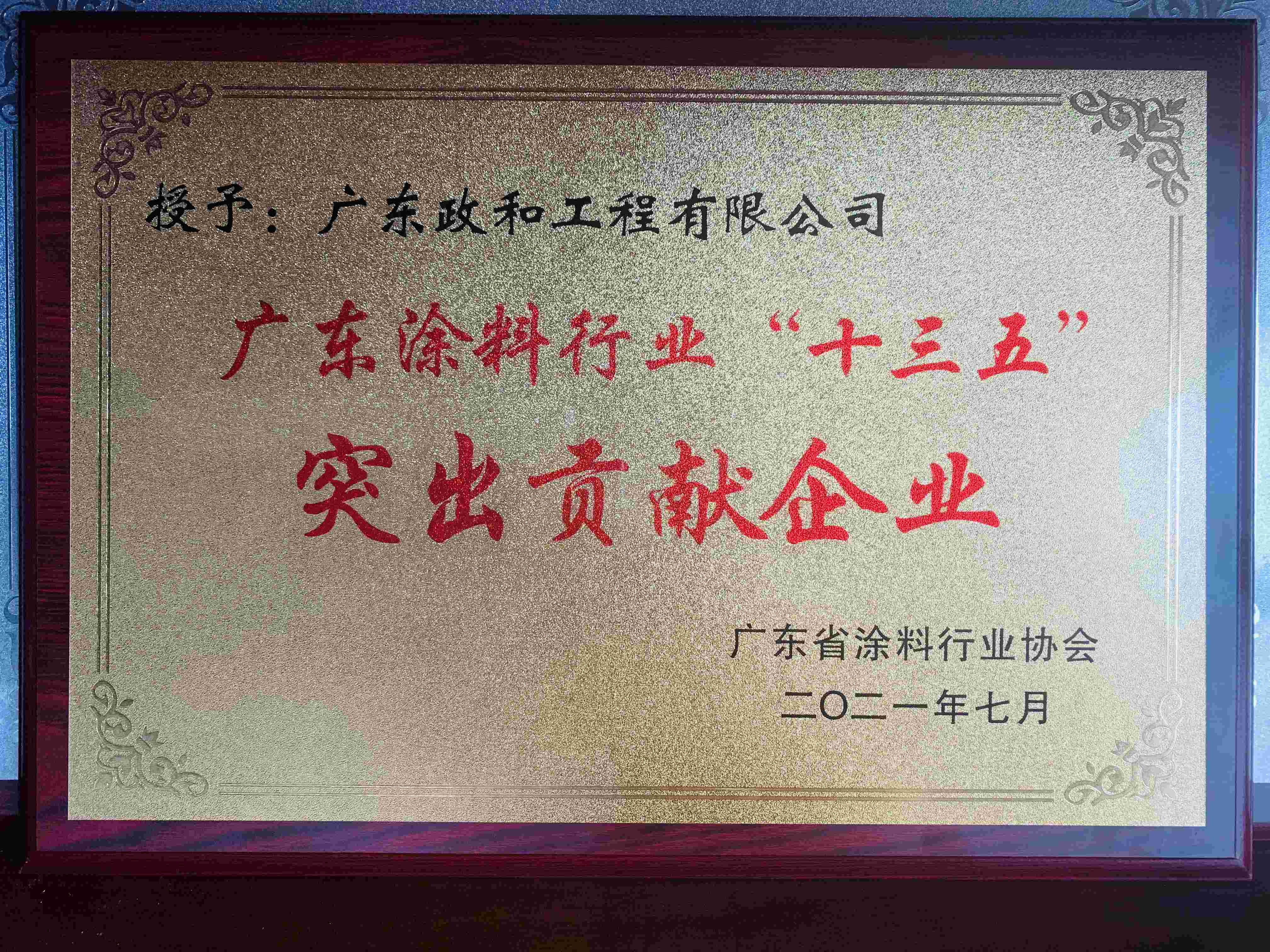 在此次大會上,對在“十三五”期間湧現的一批勇於創新、紮根研發、深耕細分、精益管理等方麵取得高質量發展品牌的企業,協會授予了“廣東塗料行業‘十三五’突出貢獻企業”獎。政和工程在表彰中榮膺“廣東塗料行業‘十三五’突出貢獻企業”榮譽獎章!這是塗料行業對政和工程的充分肯定,也是每一個政和人共同努力的成果,政和工程將進一步開展創新研發,務實篤行、行(xing)穩(wen)致(zhi)遠(yuan),提(ti)高(gao)服(fu)務(wu)品(pin)質(zhi),不(bu)斷(duan)朝(chao)著(zhe)信(xin)息(xi)化(hua)智(zhi)能(neng)化(hua)新(xin)經(jing)濟(ji)時(shi)代(dai)雲(yun)工(gong)程(cheng)合(he)營(ying)共(gong)享(xiang)方(fang)向(xiang)發(fa)展(zhan),做(zuo)到(dao)精(jing)細(xi)設(she)計(ji),客(ke)戶(hu)滿(man)意(yi),政(zheng)通(tong)人(ren)和(he),利(li)他(ta)至(zhi)上(shang)。同(tong)時(shi),政(zheng)和(he)工(gong)程(cheng)有(you)幸(xing)參(can)編(bian)了(le)《廣東省塗料行業“十四五”發展規劃(2021年-2025年)》,為塗料行業未來的發展建言獻策,祝願廣東省塗料行業“十四五”期間取得更大的成就。