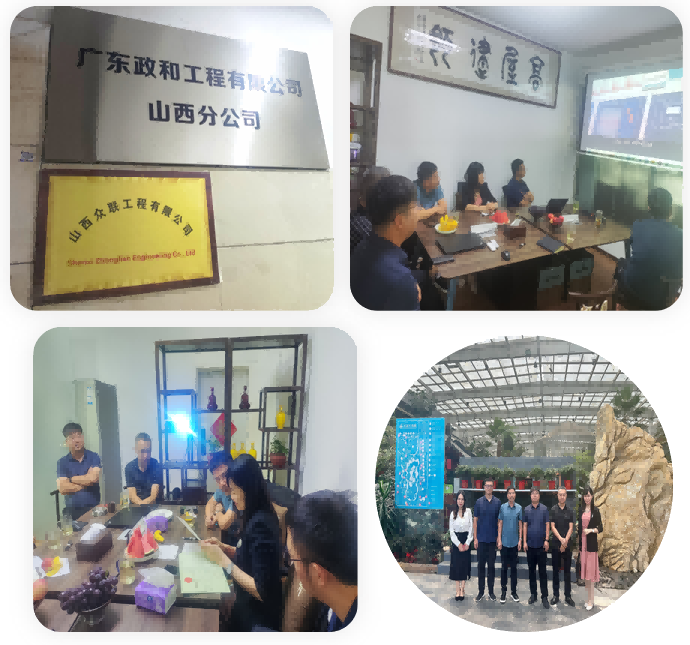 七月盛夏,灼熱的陽光沒能阻擋政和人前行的步伐,公司董事長李昌環、總經理王芳、副總經理曾天鷹以及工程中心助理李秀雯一行,於2023年7月16—23日為期7天前往魯晉冀浙4省6市政和分公司走訪交流,旨在相互學習,取長補缺,共享共贏。所到之處,深受各分公司熱情響應與積極交流,就分公司團隊管理、業務運營、技術特點、設計質量、市場痛點等共性話題切入討論交流,剖析當前設計市場中突出的問題,借鑒學習雙方先進經驗,共同維護好雙方利益和公司品牌。