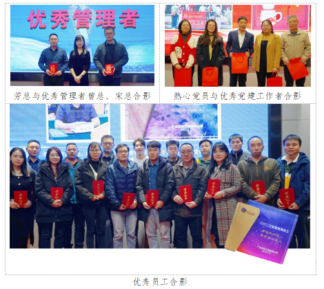 接下來,會議進入了表彰與頒獎環節。首先是優秀員工的頒獎環節。芳總與曾天鷹總、王毅峰總、胡雪萍主任分別公布了優秀管理者與優秀員工的名單,一一頒發了證書、獎金並合影留念。