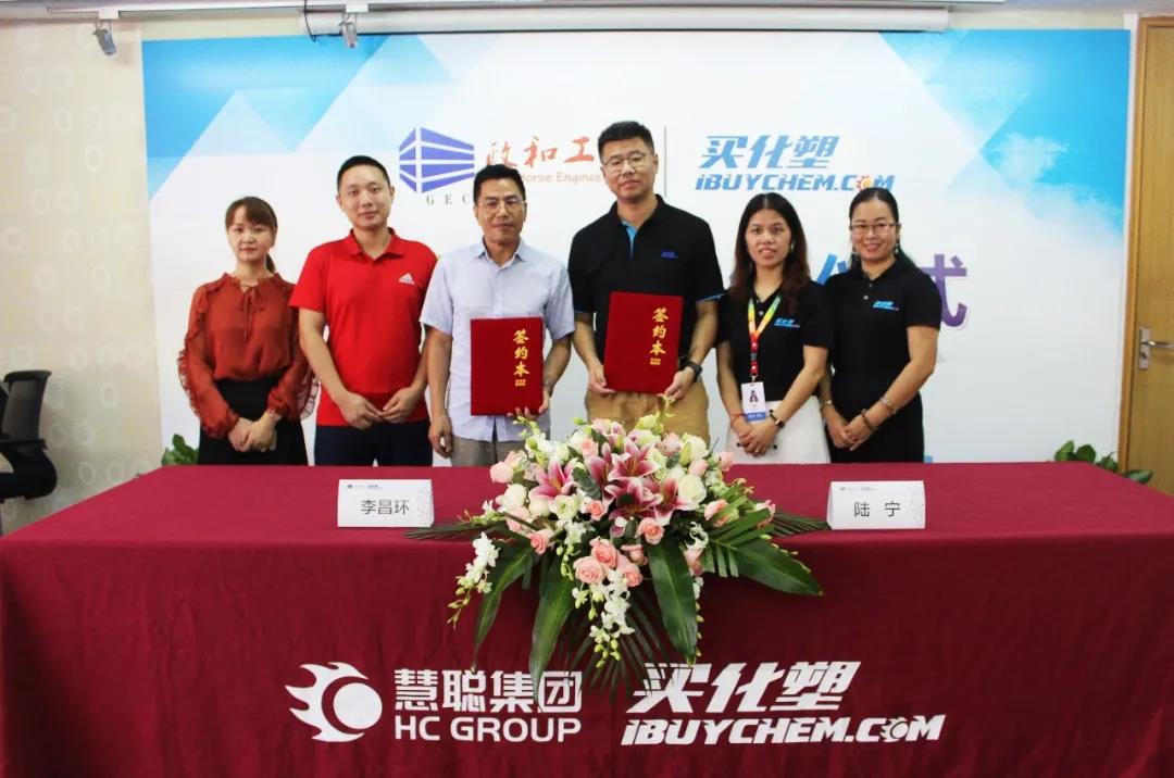 廣東政和工程有限公司董事長李昌環先生, 董事長秘書石燕飛小姐, 經營管理部經理宋士平先生,以及買化塑COO陸寧先生,買化塑信息服務公司副總經理陳雪明小姐及營銷總監羅麗貞小姐,出席簽約儀式。