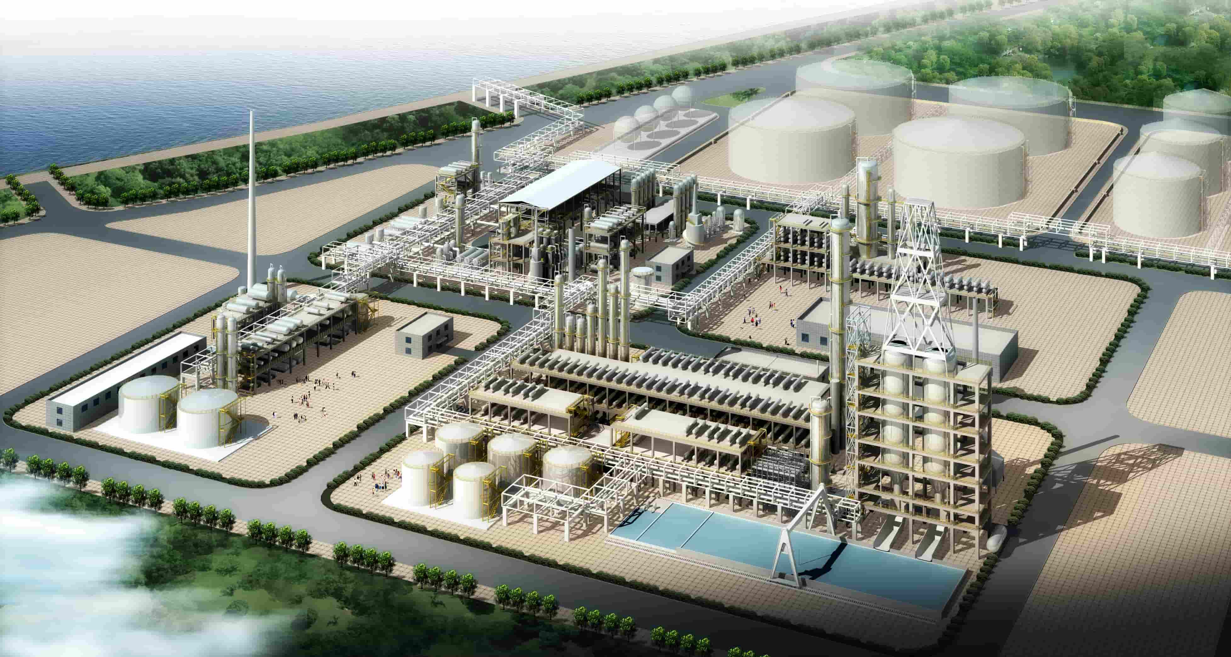 占地麵積162369.40m2,建築麵積12425.18m2,總庫容:176100m³,其中汽油/煤焦油/石腦油/液體化工品:5×7000m³,汽油/煤焦油/石腦油/液體化工品:14×5000m³,煤油/鬆節油/液體化工品:17×2500m³,液體化工品:14×1500m³,液體化工品/酸/堿:2×1500m³,液體化工品/酸/堿:5×500m³,液體化工品/酸/堿:7×300m³